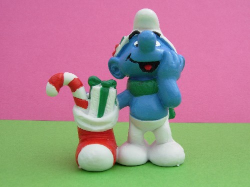 CHRISTMAS SMURF WITH STOCKING | Markings: Made In Portugal