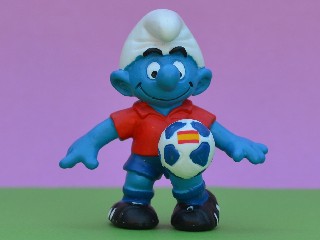 SPANISH FOOTBALLER | Markings: Made in Tunisia CE Schleich S Peyo © '03 Am Limes 69 D-73527 Schw. Gmünd (clock on foot) |